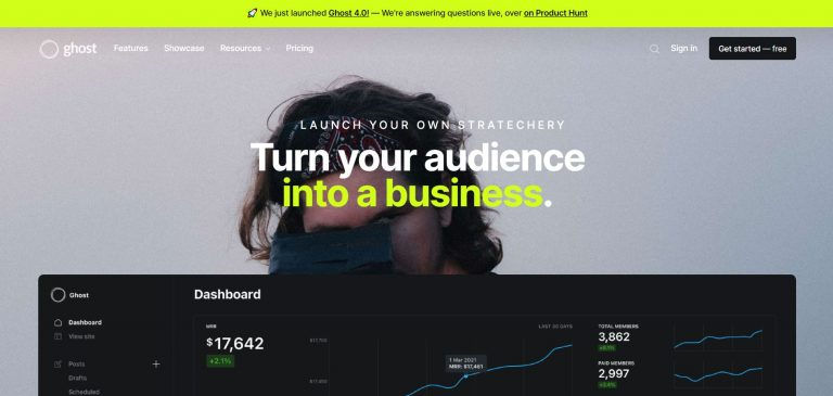— Ghost'un barındırma platformu üzerinden abone olma veya ücretsiz açık kaynağı indirme seçeneği. kendi web sunucunuza yüklemek için yazılım